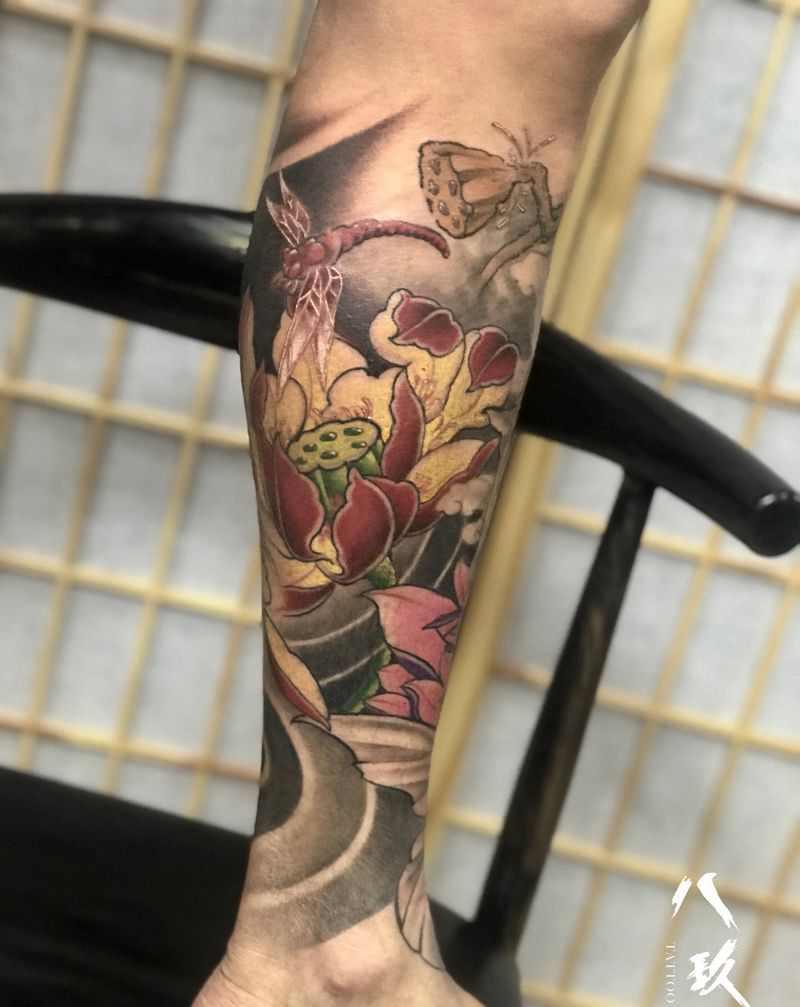 • T网红王老大花腿龙纹身图片_腿部新传统纹身图案