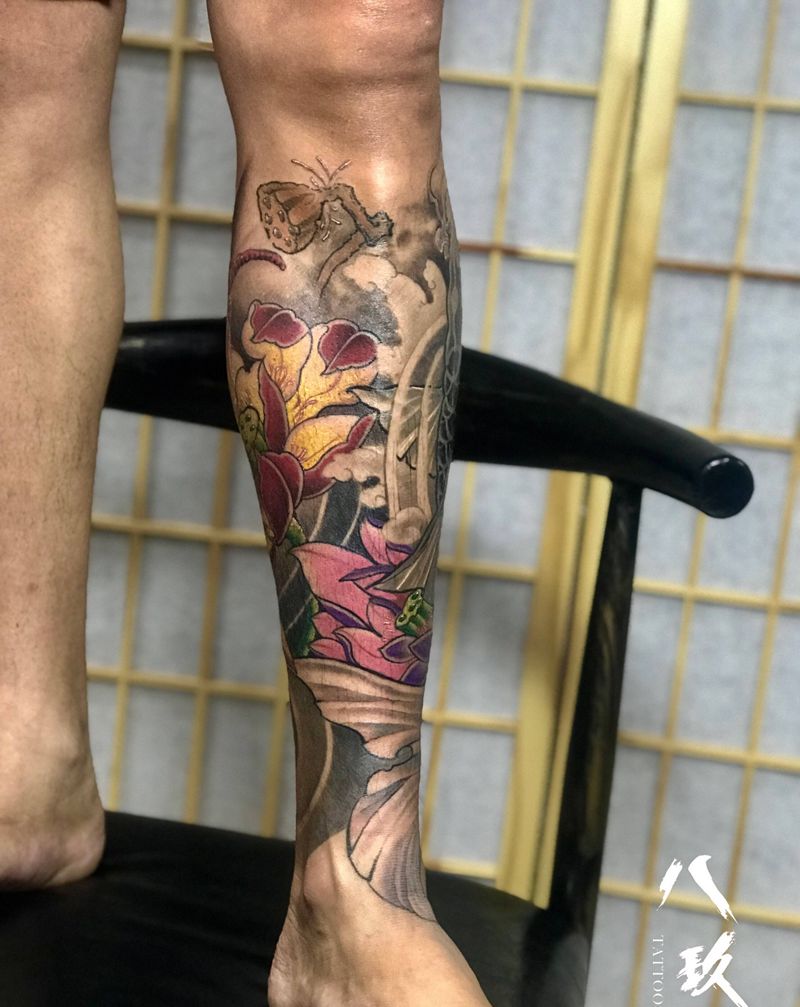 • T网红王老大花腿龙纹身图片_腿部新传统纹身图案