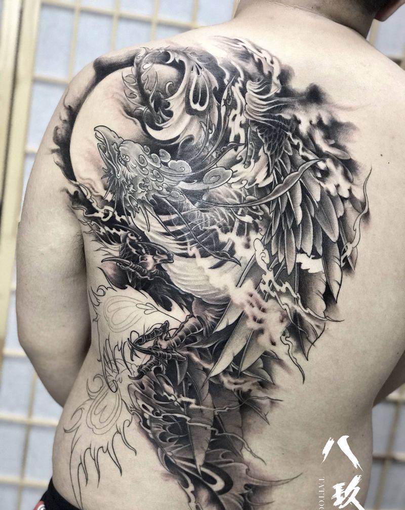 黑灰满背纹身图案