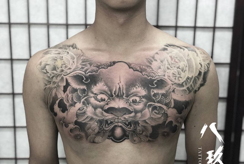 当前位置: 首页 >山东省青岛市纹身店-八玖刺青纹身图案>唐狮子纹身图片_胸部纹身图案