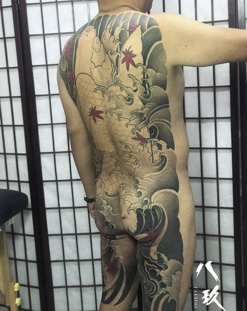 黑灰满背纹身图案