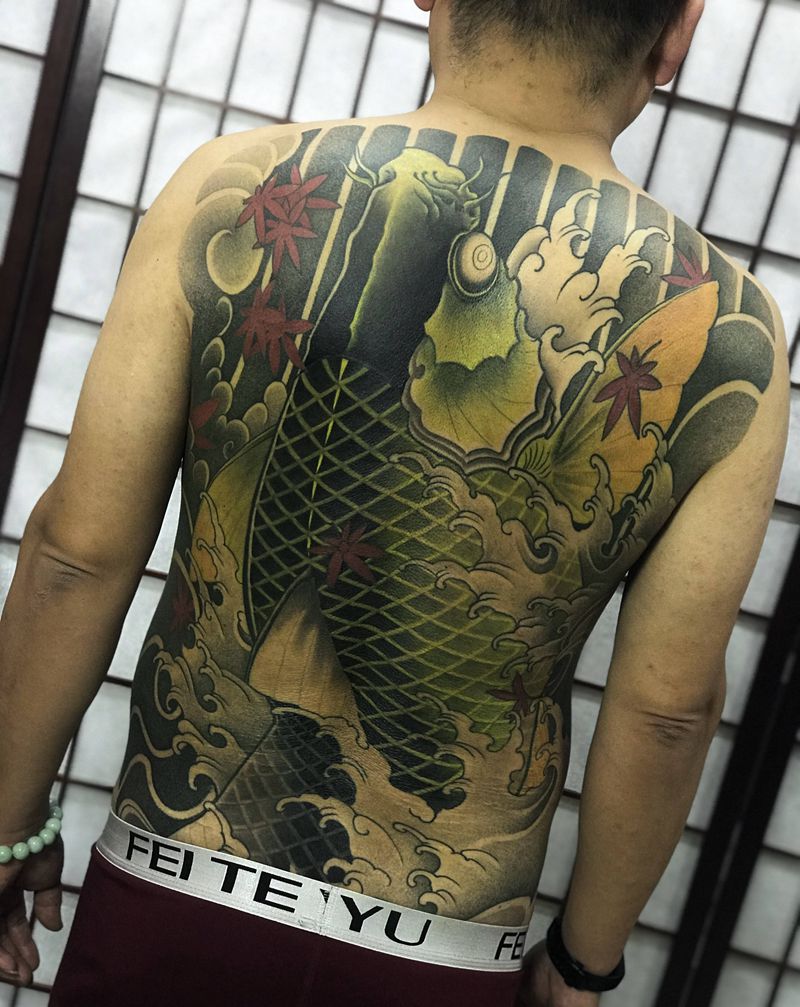 • T云龙九郎纹身图片_背部老传统云龙九郎纹身图案