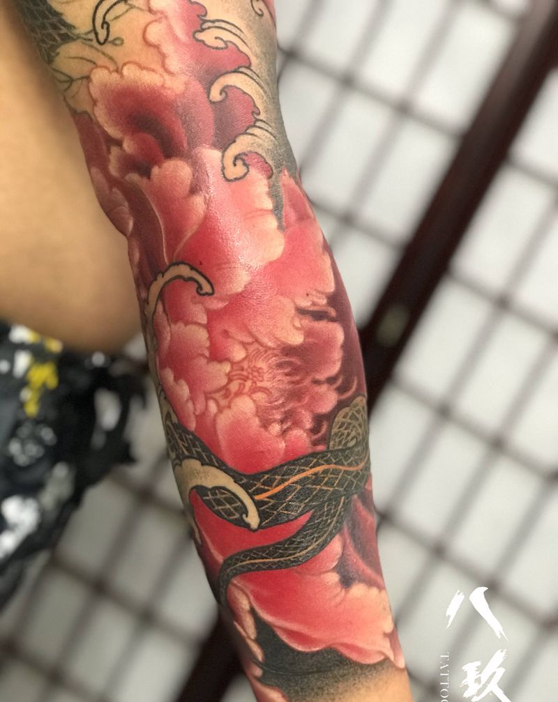 一组15张莲花纹身手