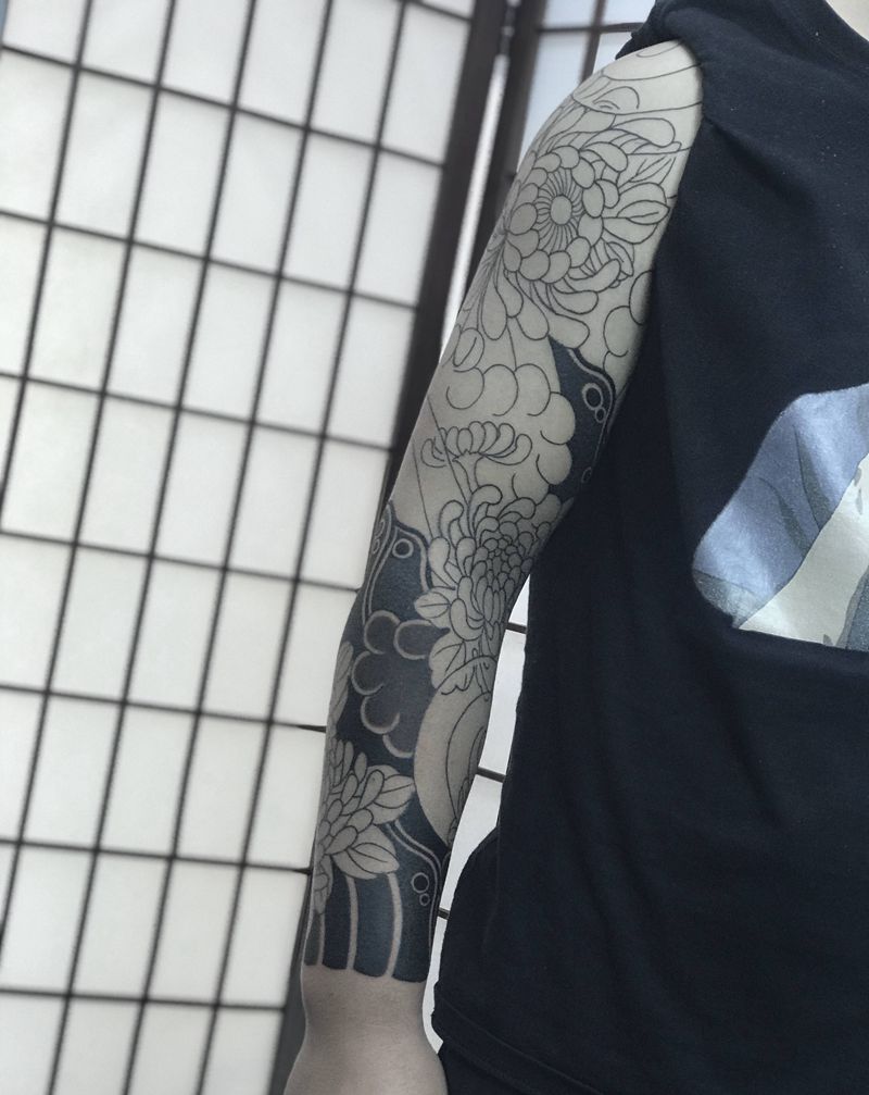 菊花纹身图片_手臂老传统纹身图案