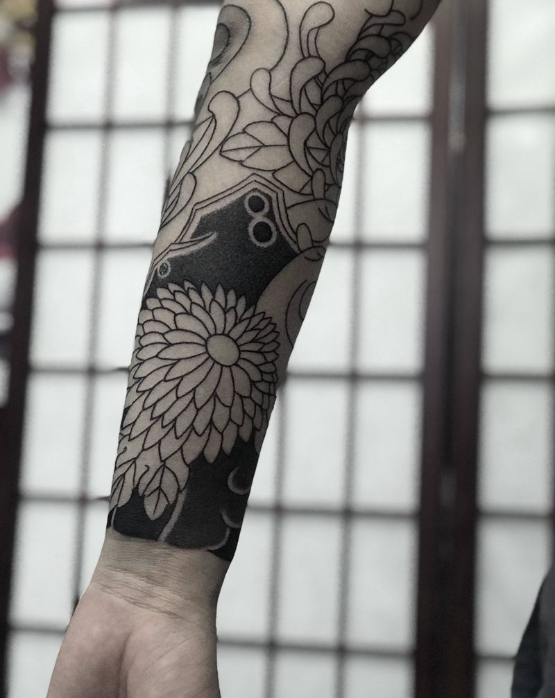 修改添加老传统菊花。纹身图片_手臂老传统纹身图案