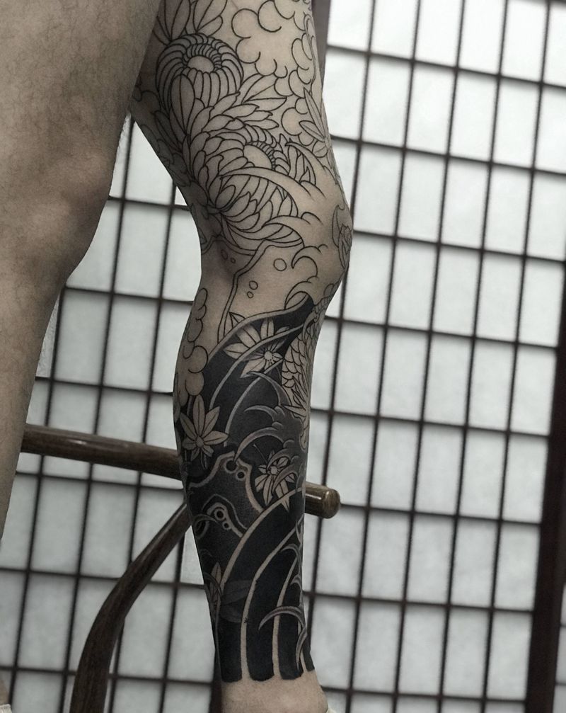 今日六小时雾。纹身图片_腿部老传统纹身图案