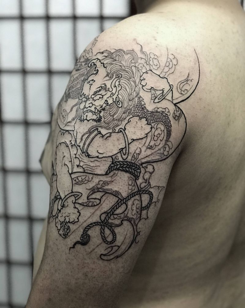 当前位置: 首页 >山东省青岛市纹身店-八玖刺青纹身图案>风神,雷神纹身图片_肩部新传统纹身图案