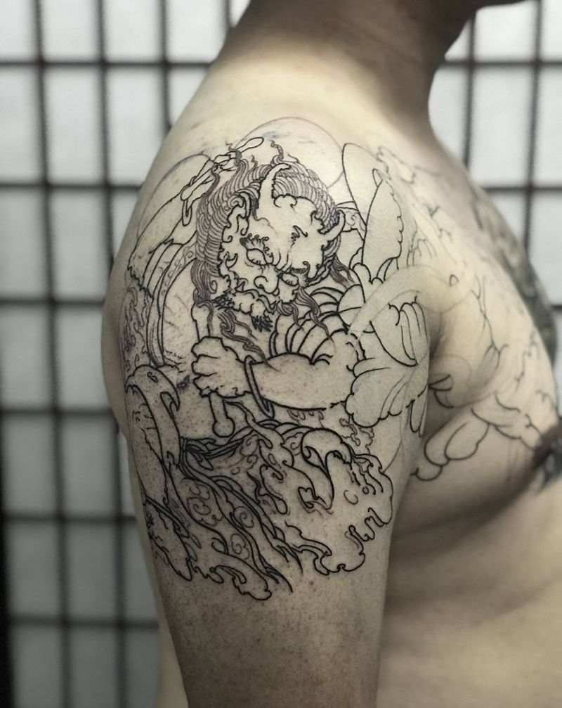 当前位置: 首页 >山东省青岛市纹身店-八玖刺青纹身图案>风神,雷神纹身图片_肩部新传统纹身图案