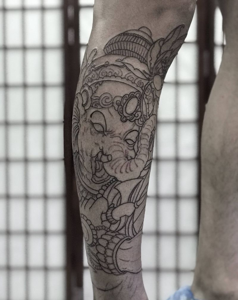 当前位置: 首页 >山东省青岛市纹身店-八玖刺青纹身图案>包小腿象神纹身图片_新传统纹身图案