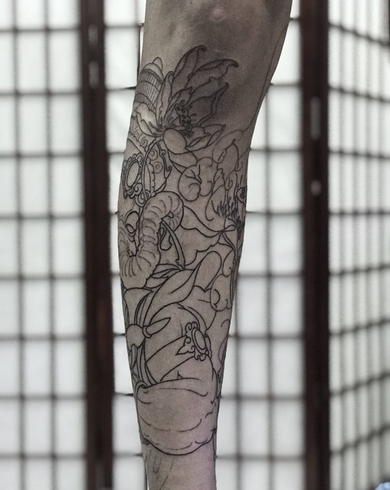 当前位置: 首页 >山东省青岛市纹身店-八玖刺青纹身图案>包小腿象神纹身图片_新传统纹身图案