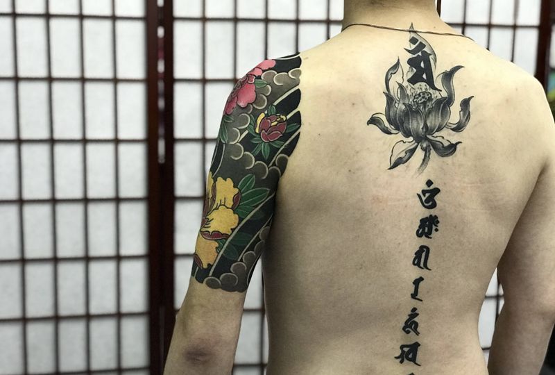 一组15张莲花纹身手