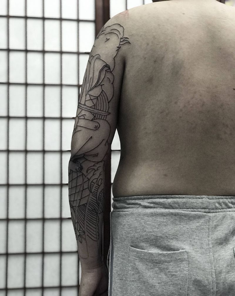 当前位置: 首页 >山东省青岛市纹身店-八玖刺青纹身图案>鬼若丸杀鲤纹身图片_老传统纹身图案