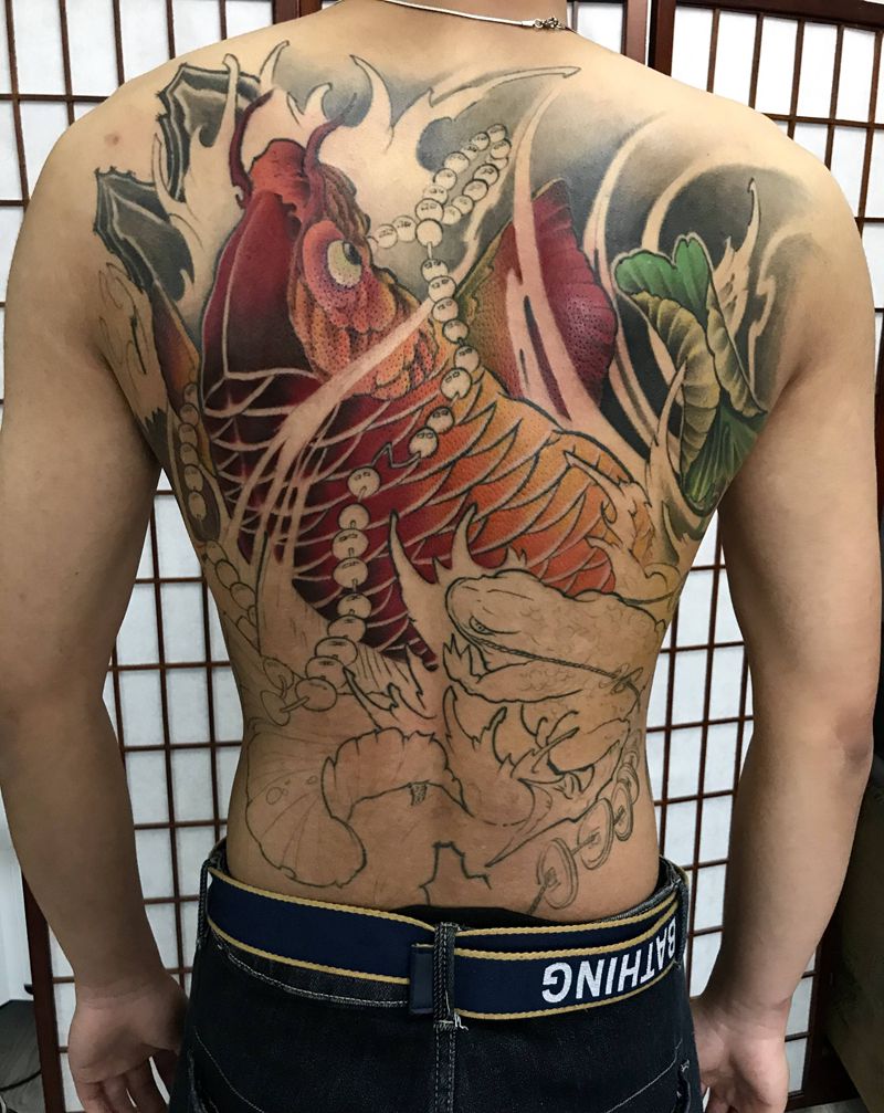 当前位置: 首页 >山东省青岛市纹身店-八玖刺青纹身图案>三年前的满背未完纹身图片_新传统纹身图案