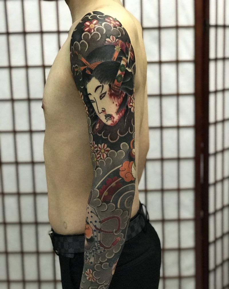 当前位置: 首页 >山东省青岛市纹身店-八玖刺青纹身图案>日式生首花臂纹身图片_手臂老传统纹身图案
