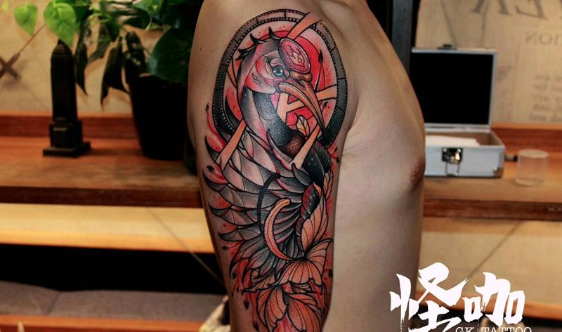 当前位置: 首页 >山东省青岛市纹身店-怪咖纹身刺青(凯德店)纹身图案>仙鹤纹身图片_手臂New School纹身图案