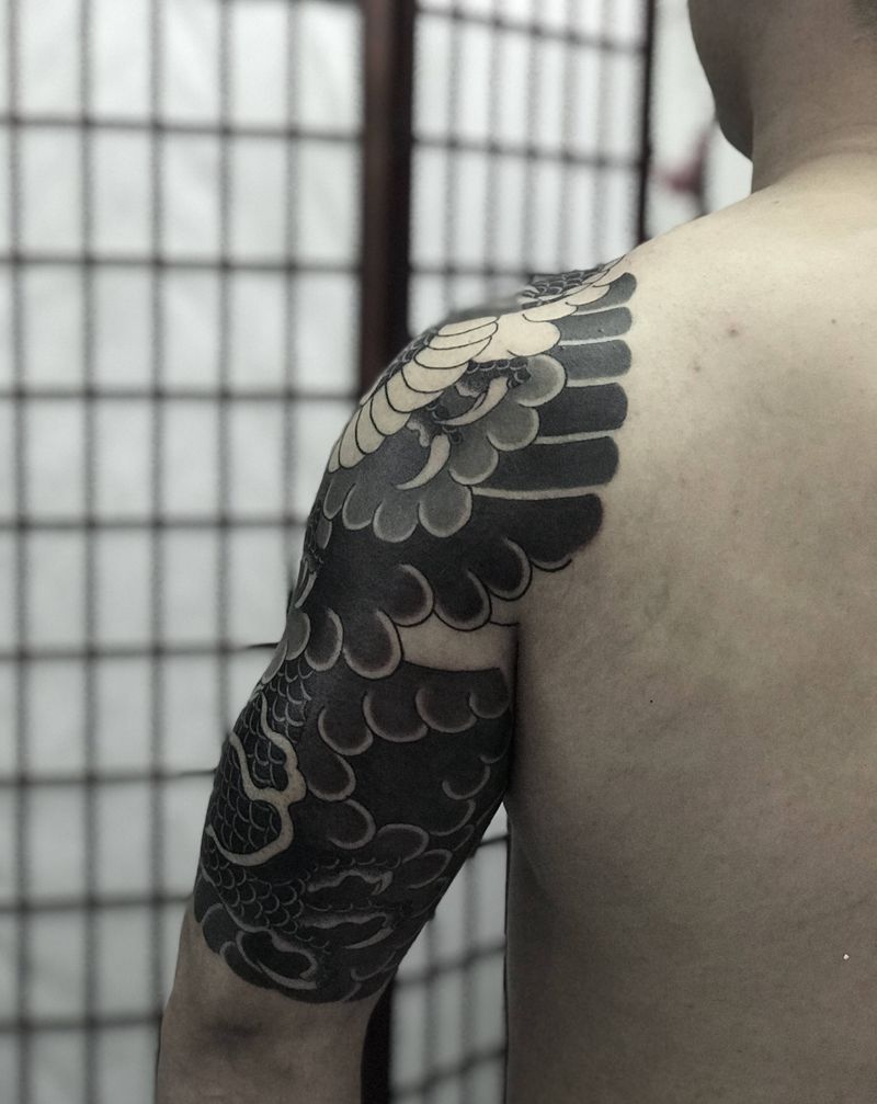 • 纹身吧推荐的披肩图腾半胛纹身图案作品展示