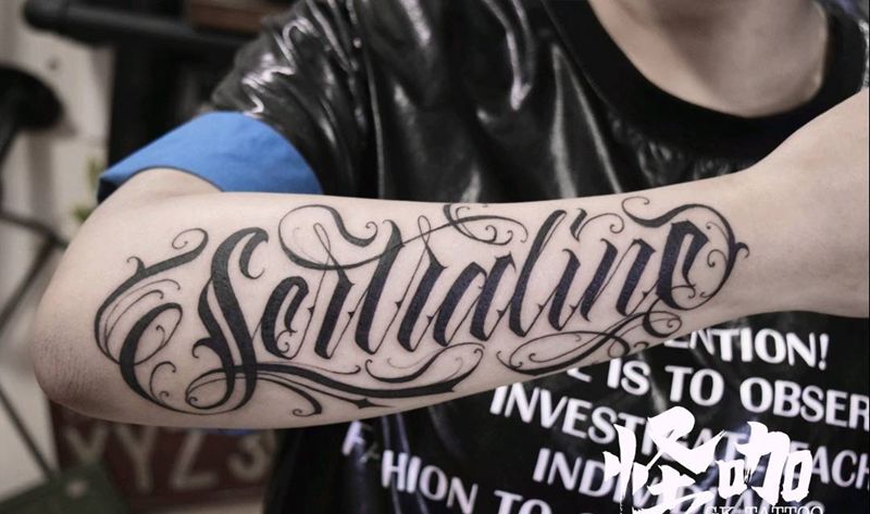 当前位置: 首页 >山东省青岛市纹身店-怪咖纹身刺青(凯德店)纹身图案>原创花体字纹身图片_手臂花体字纹身图案