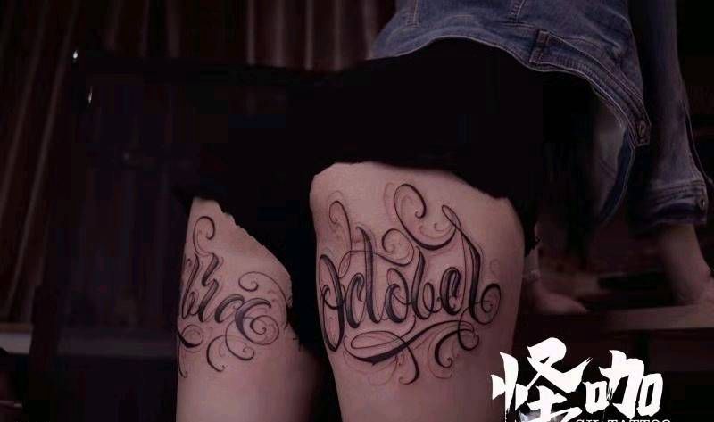 当前位置: 首页 >山东省青岛市纹身店-怪咖纹身刺青(凯德店)纹身图案>原创花体字纹身图片_腿部花体字纹身图案