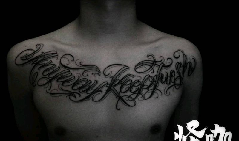 当前位置: 首页 >山东省青岛市纹身店-怪咖纹身刺青(凯德店)纹身图案>奇卡诺花体字与小丑纹身图片