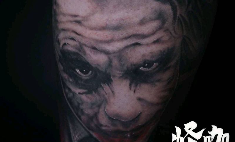 当前位置: 首页 >山东省青岛市纹身店-怪咖纹身刺青(凯德店)纹身图案>奇卡诺花体字与小丑纹身图片