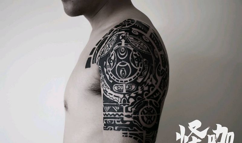 • 纹身吧推荐的披肩图腾半胛纹身图案作品展示