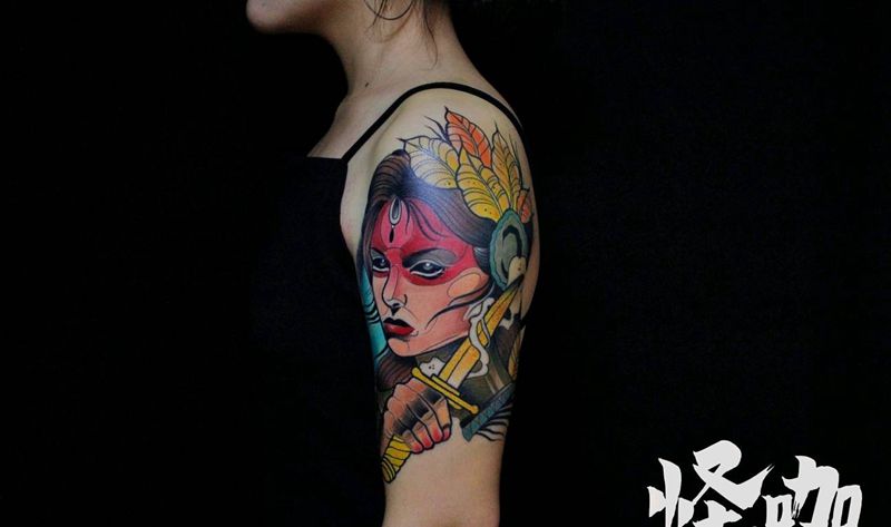 • 纹身吧推荐的披肩图腾半胛纹身图案作品展示