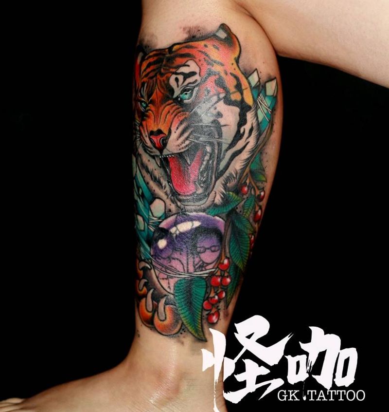 • T网红王老大花腿龙纹身图片_腿部新传统纹身图案