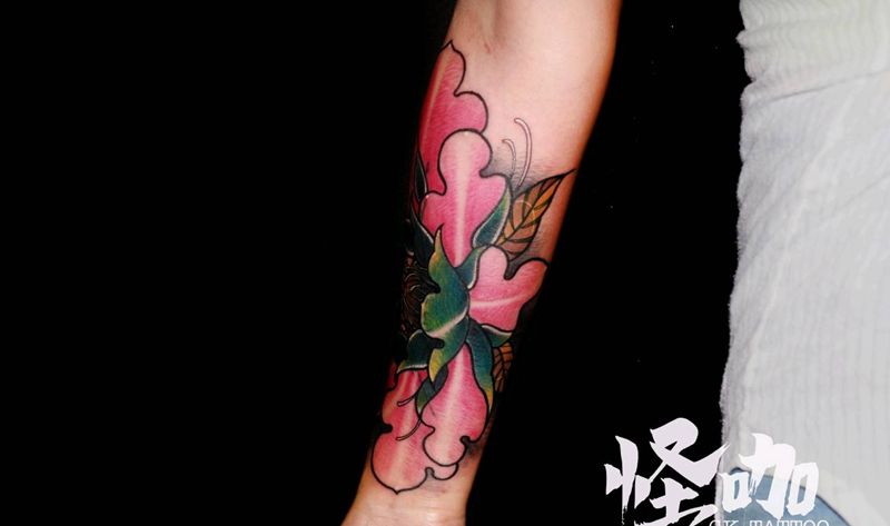 当前位置: 首页 >山东省青岛市纹身店-怪咖纹身刺青(凯德店)纹身图案>遮盖作品纹身图片_手臂新传统纹身图案
