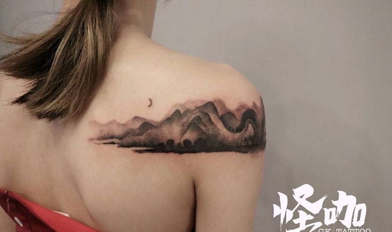 当前位置: 首页 >山东省青岛市纹身店-怪咖纹身刺青(凯德店)纹身图案>水墨-山水纹身图片_手臂水墨纹身图案