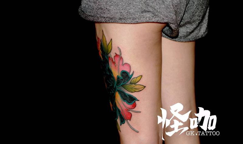 当前位置: 首页 >山东省青岛市纹身店-怪咖纹身刺青(凯德店)纹身图案>大腿-疤痕遮盖纹身图片_腿部新传统纹身图案