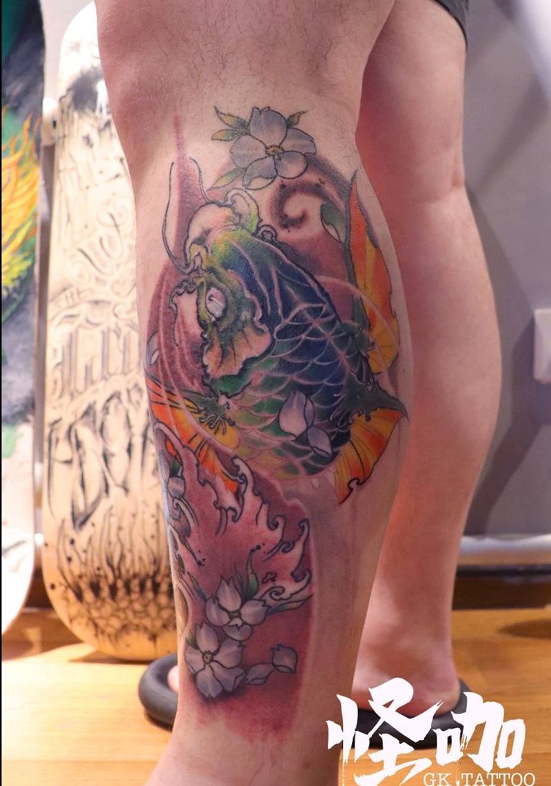 当前位置: 首页 >山东省青岛市纹身店-怪咖纹身刺青(凯德店)纹身图案>小腿鲤鱼纹身图片_腿部新传统纹身图案