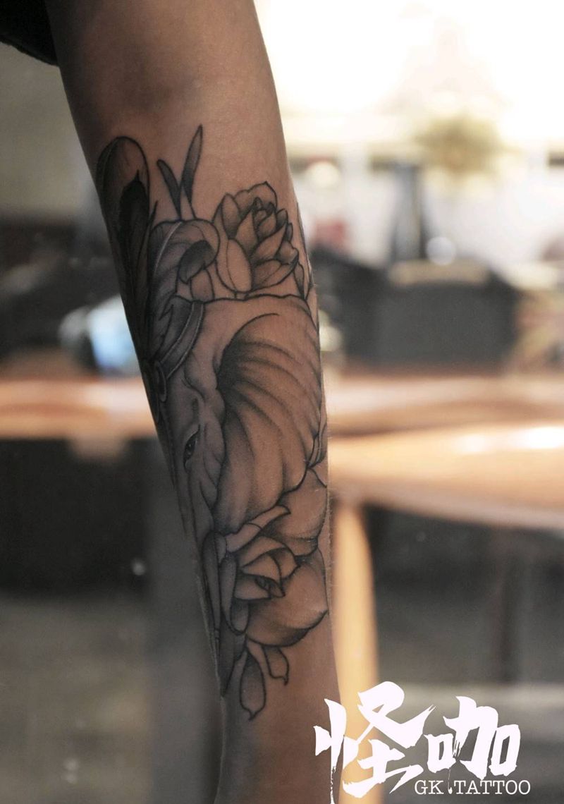 当前位置: 首页 >山东省青岛市纹身店-怪咖纹身刺青(凯德店)纹身图案>象神-小臂纹身图片_手臂欧美写实纹身图案
