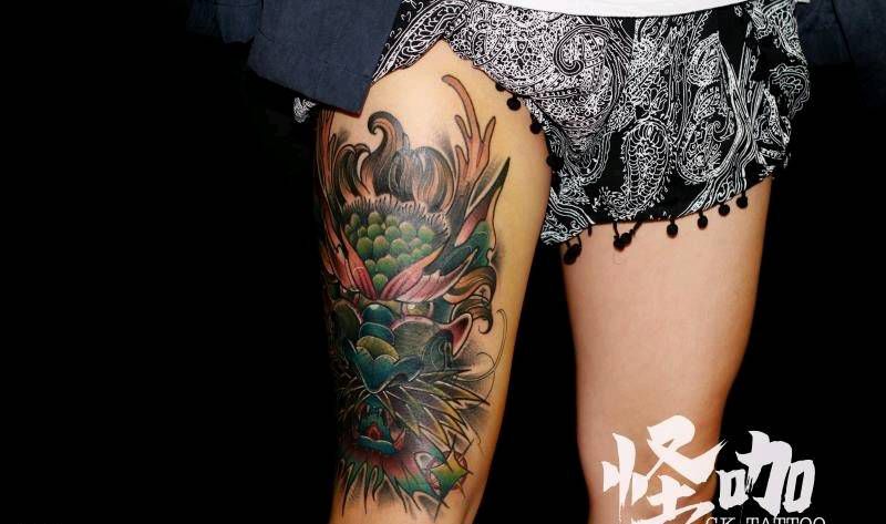 • T网红王老大花腿龙纹身图片_腿部新传统纹身图案