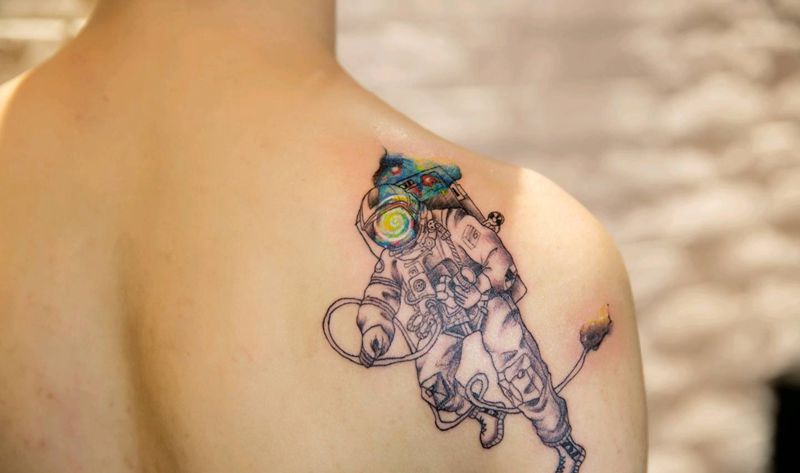 当前位置: 首页 >山东省青岛市纹身店-荒野刺青纹身图案>宇航员纹身图片_肩部清新原创成品纹身图案