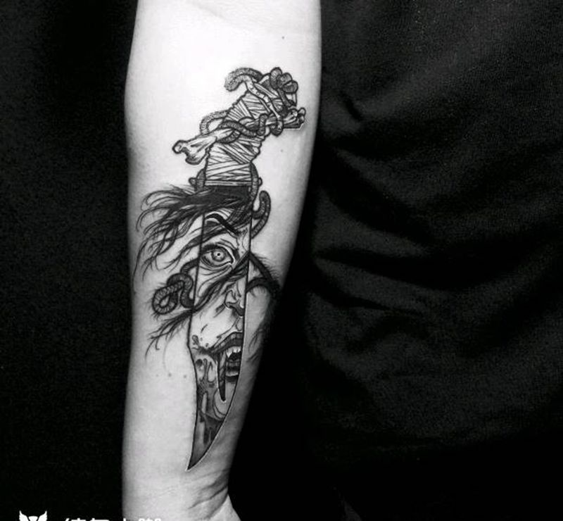 当前位置: 首页 >山东省青岛市纹身店-荒野刺青纹身图案>匕首纹身图片_手臂传统人物成品纹身图案