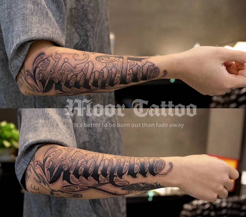 当前位置: 首页 >山东省青岛市纹身店-荒野刺青纹身图案>花体字纹身图片_手臂花体字纹身图案