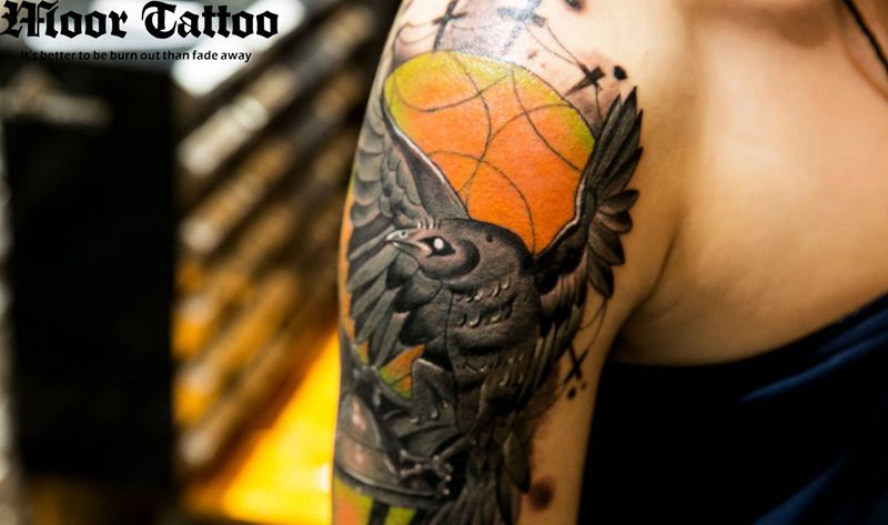 当前位置: 首页 >山东省青岛市纹身店-荒野刺青纹身图案>乌鸦纹身图片_手臂欧美成品纹身图案