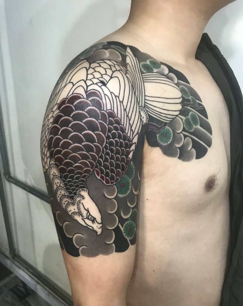 半甲作品纹身图片_胸部手臂老传统鹰纹身图案