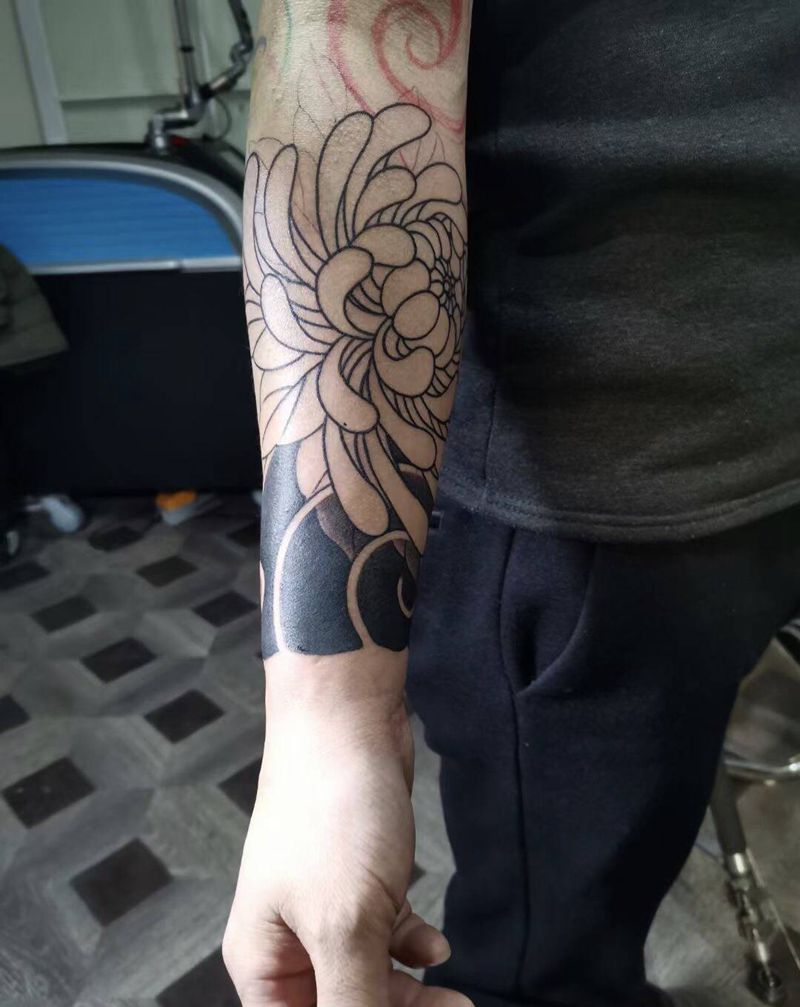 花臂封口纹身图片_手臂老传统菊花纹身图案