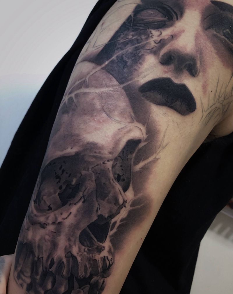 当前位置: 首页 >山东省青岛市纹身店-灵刺青 SOULTATTOO纹身图案>暗黑花臂纹身图片_骷髅纹身图案