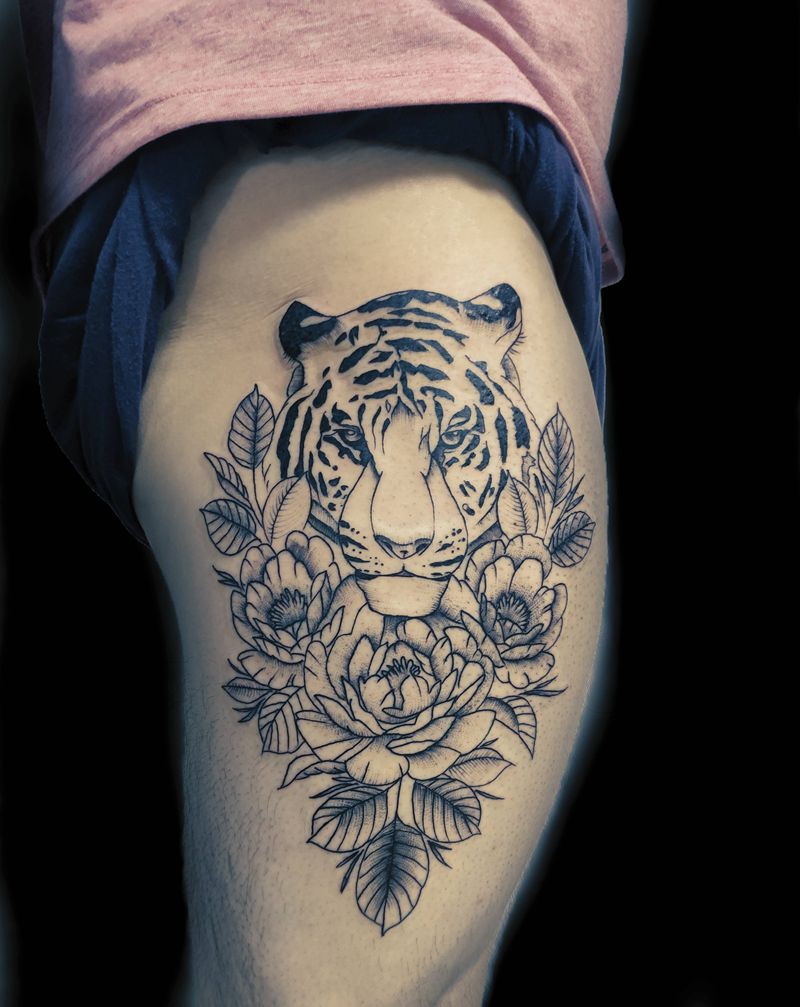 老虎纹身图片_腿部点刺纹身图案