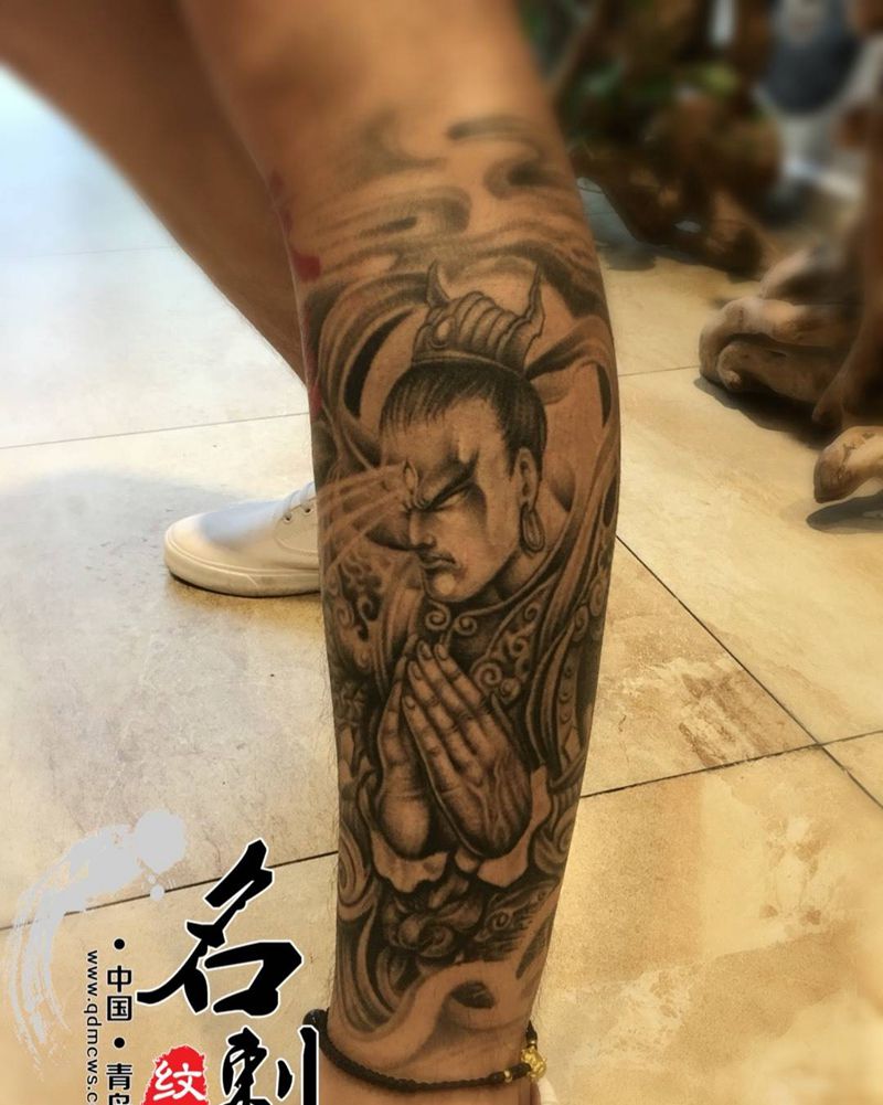 当前位置: 首页 >山东省青岛市纹身店-青岛名刺纹身纹身图案>二郎神恢复三年后纹身图片_成品腿部传统鬼神纹身图案