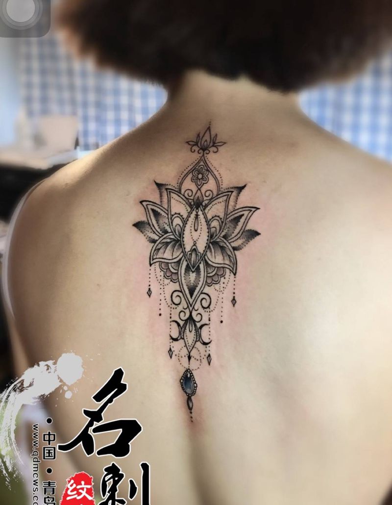 梵花纹身图片_背部图腾点刺纹身图案