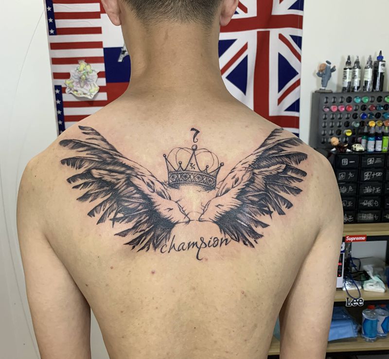 当前位置: 首页 >山东省青岛市纹身店-A·刺青工作室纹身图案>翅膀皇冠纹身图片_背部几何点刺纹身图案