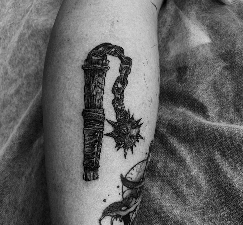 当前位置: 首页 >山东省青岛市纹身店-A·刺青工作室纹身图案>流星锤 锤你胸口