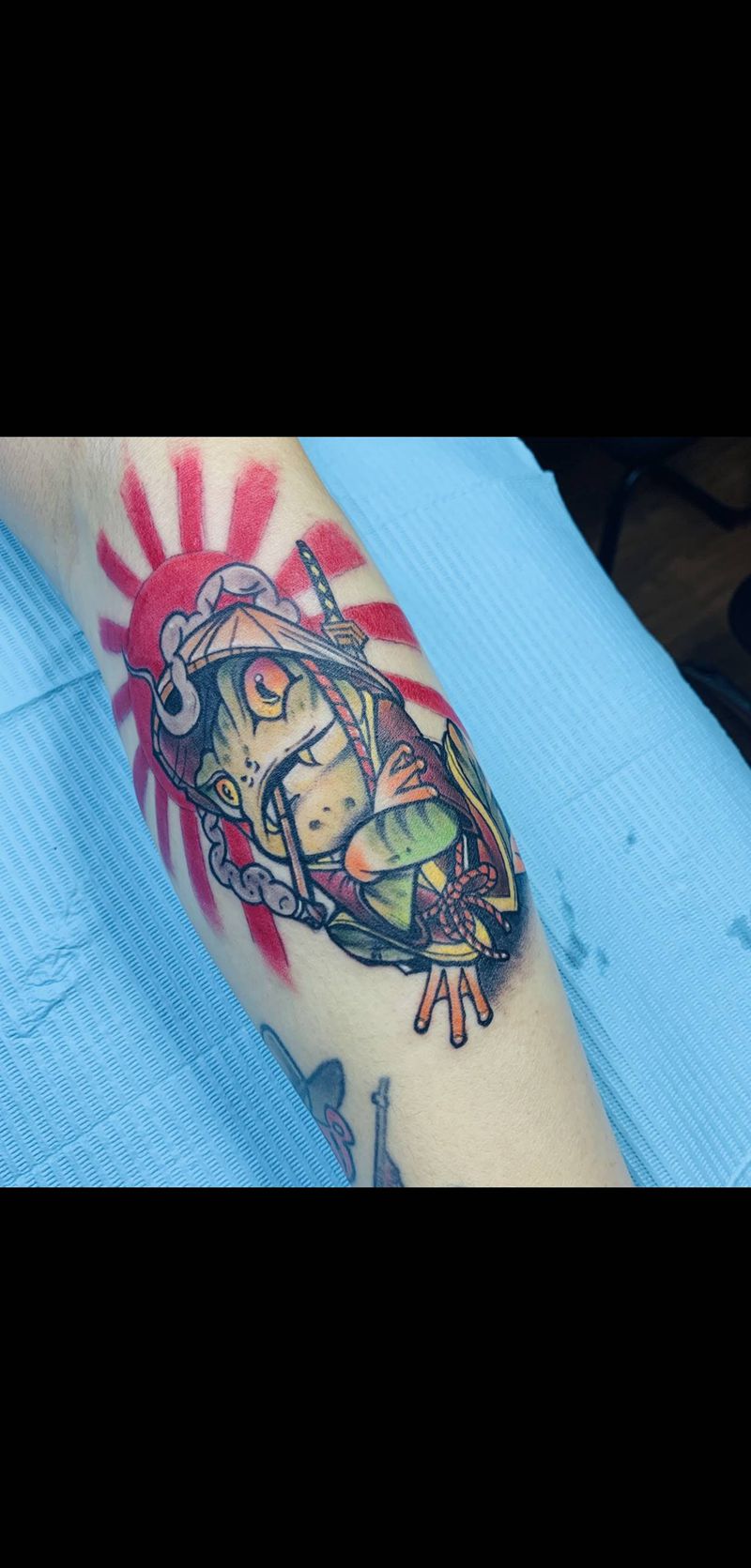 当前位置: 首页 >山东省青岛市纹身店-A·刺青工作室纹身图案>青蛙忍者纹身图片_手臂New School纹身图案