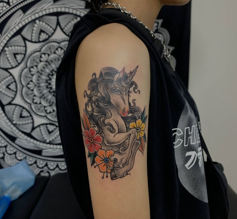 独角兽纹身图片_手臂纹身图案
