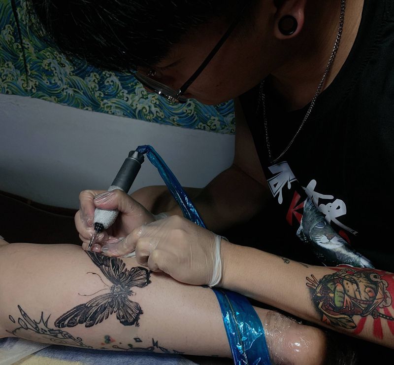 当前位置: 首页 >山东省青岛市纹身店-A·刺青工作室纹身图案>蝴蝶纹身图片_腿部点刺纹身图案