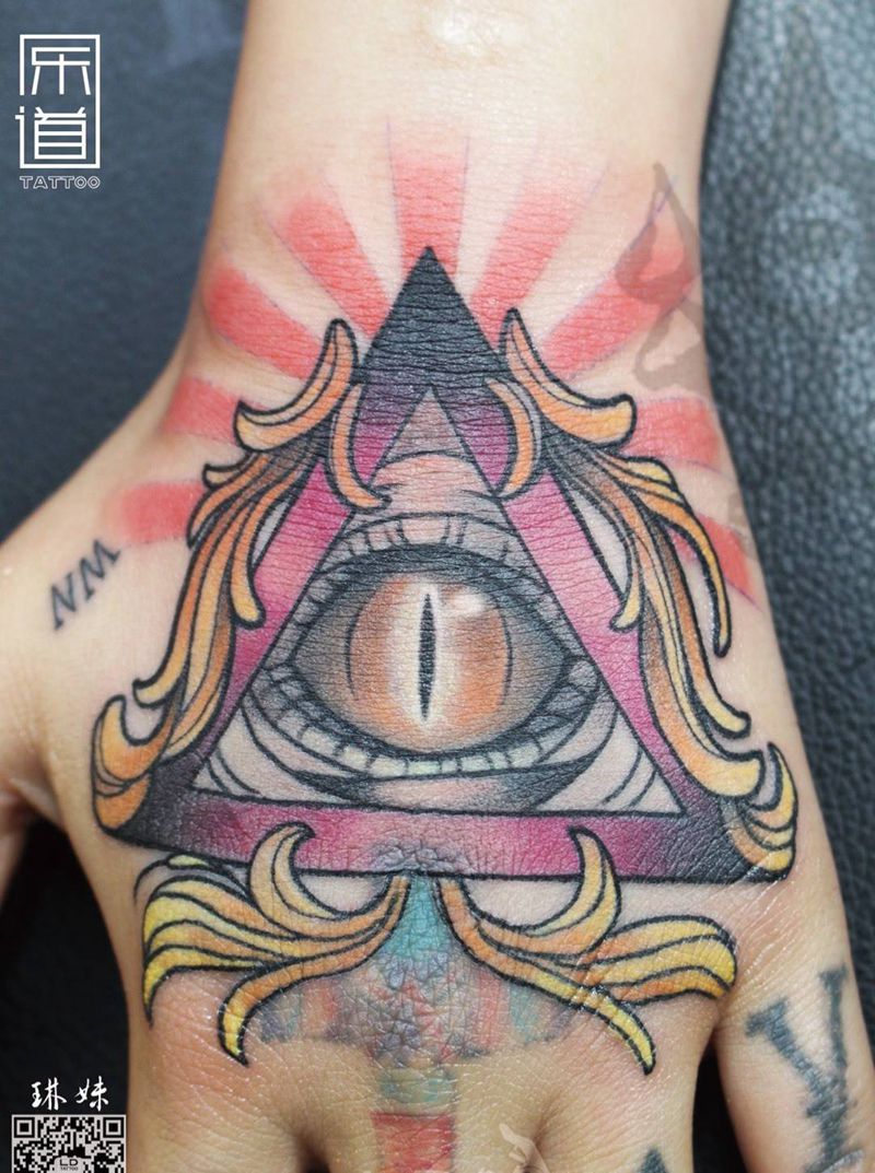 真视之眼纹身图片_School 原创几何清新手部成品手稿纹身图案
