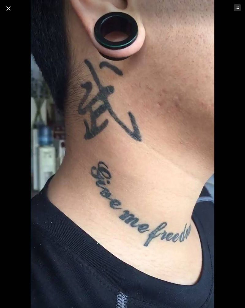 暴力遮盖纹身图片_遮盖欧美传统颈部写实纹身图案